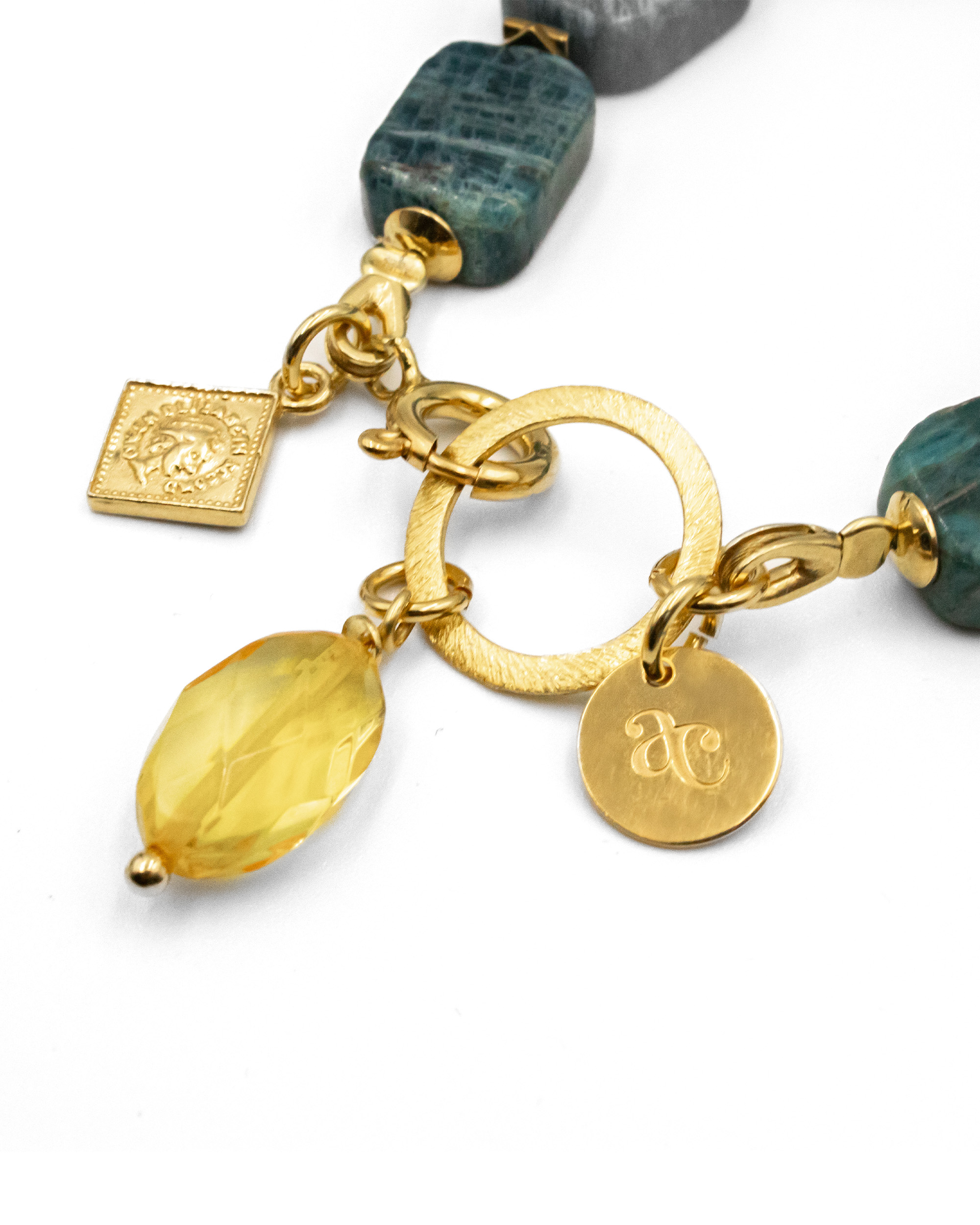 Bracelet with apatite, gold-plated elements with lemon amber.