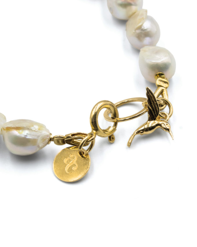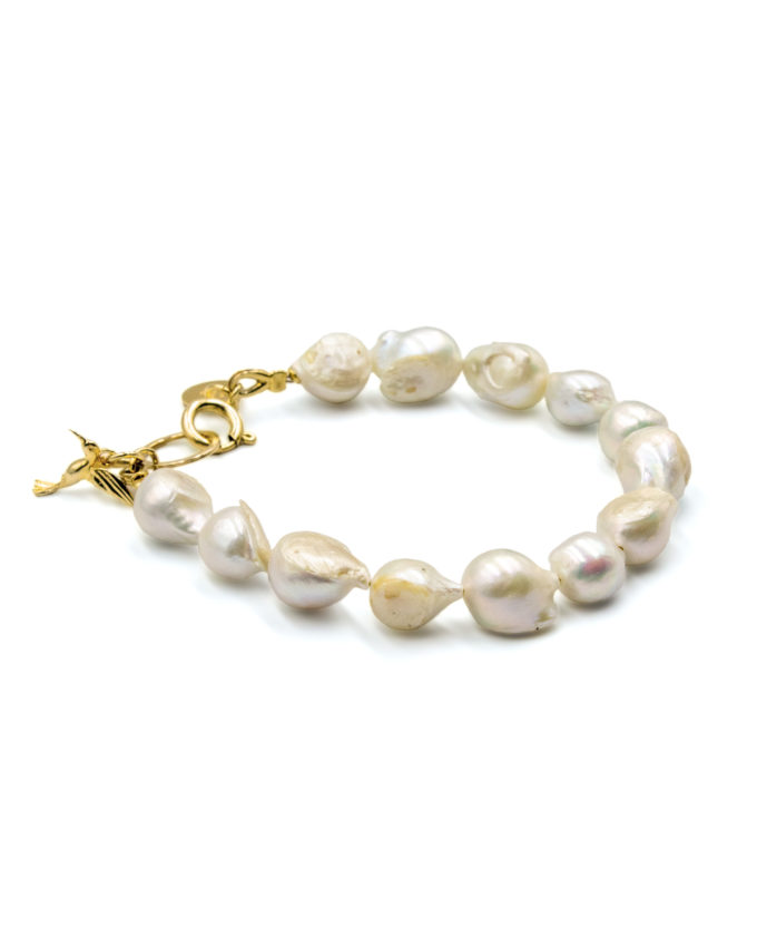 Bracelet with baroque pearls and a gold-plated clasp as well as a gold-plated pendant.