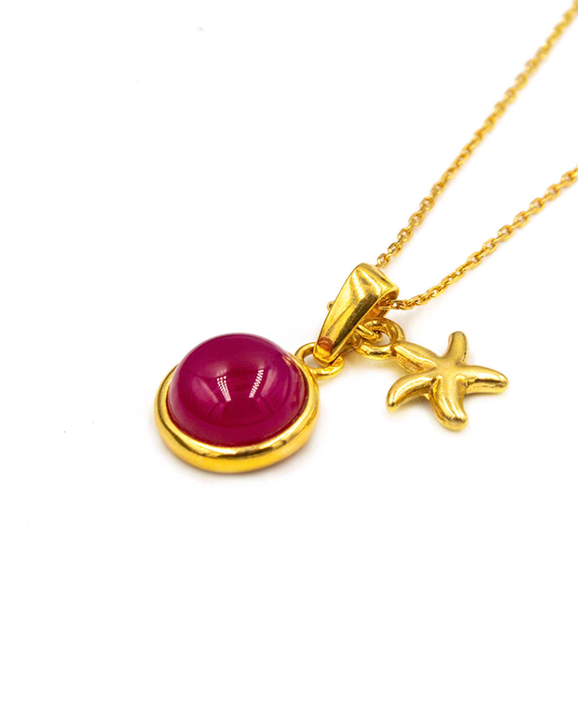Gold-plated necklace with agate and a decorative pendant.