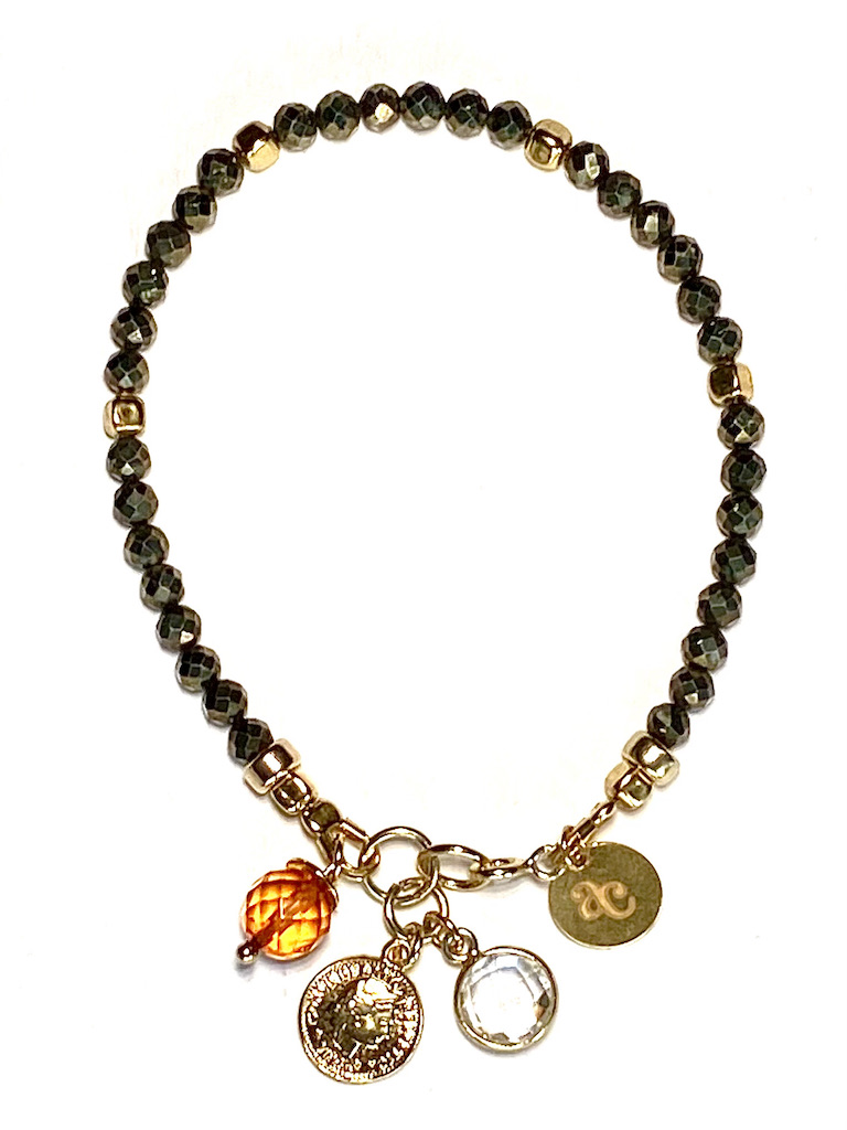 Bracelet with pyrite stone, decorated with modern elements.