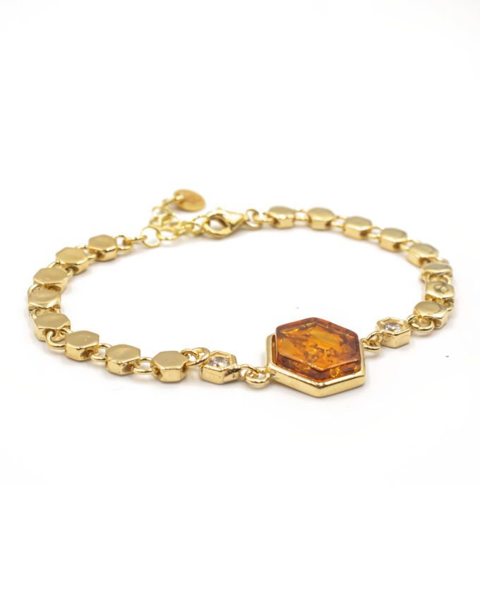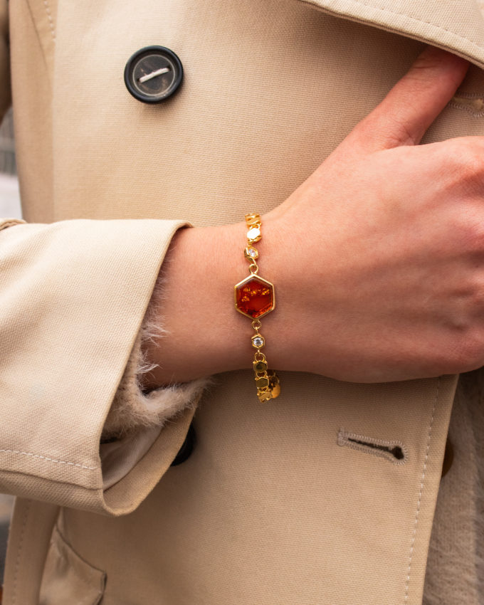 Gold-plated with 24-carat gold silver bracelet with cognac amber.