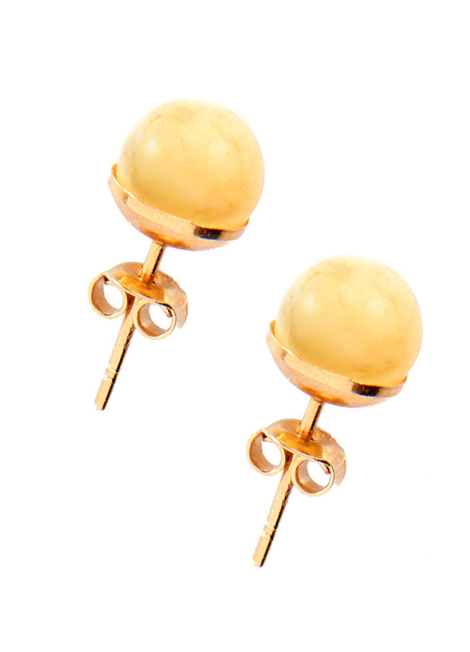 Stud earrings with white/milky amber.