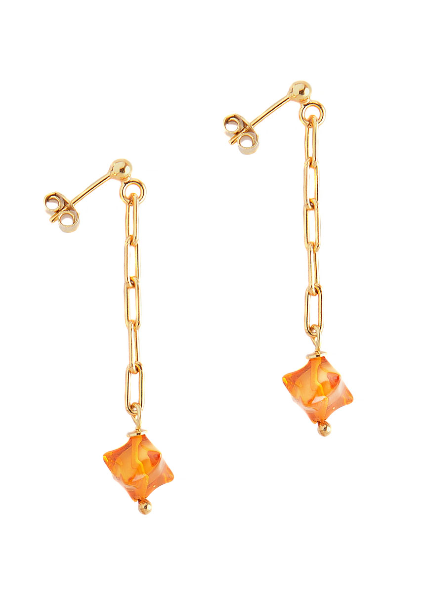 Earrings with cognac amber and a gold-plated silver.
