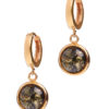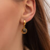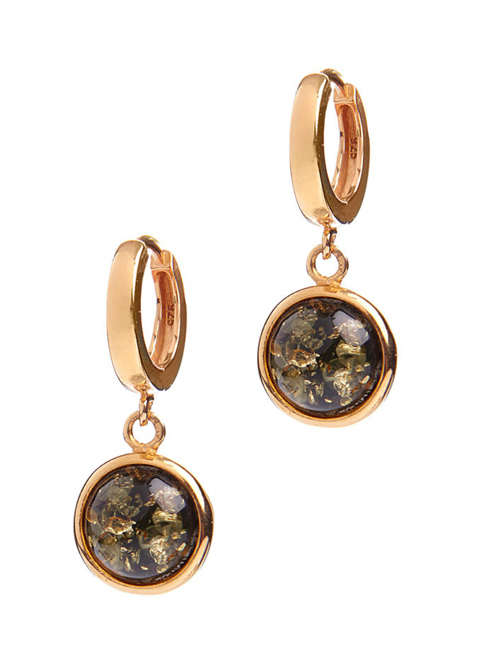 Earrings with a round gold-plated clasp and green amber.