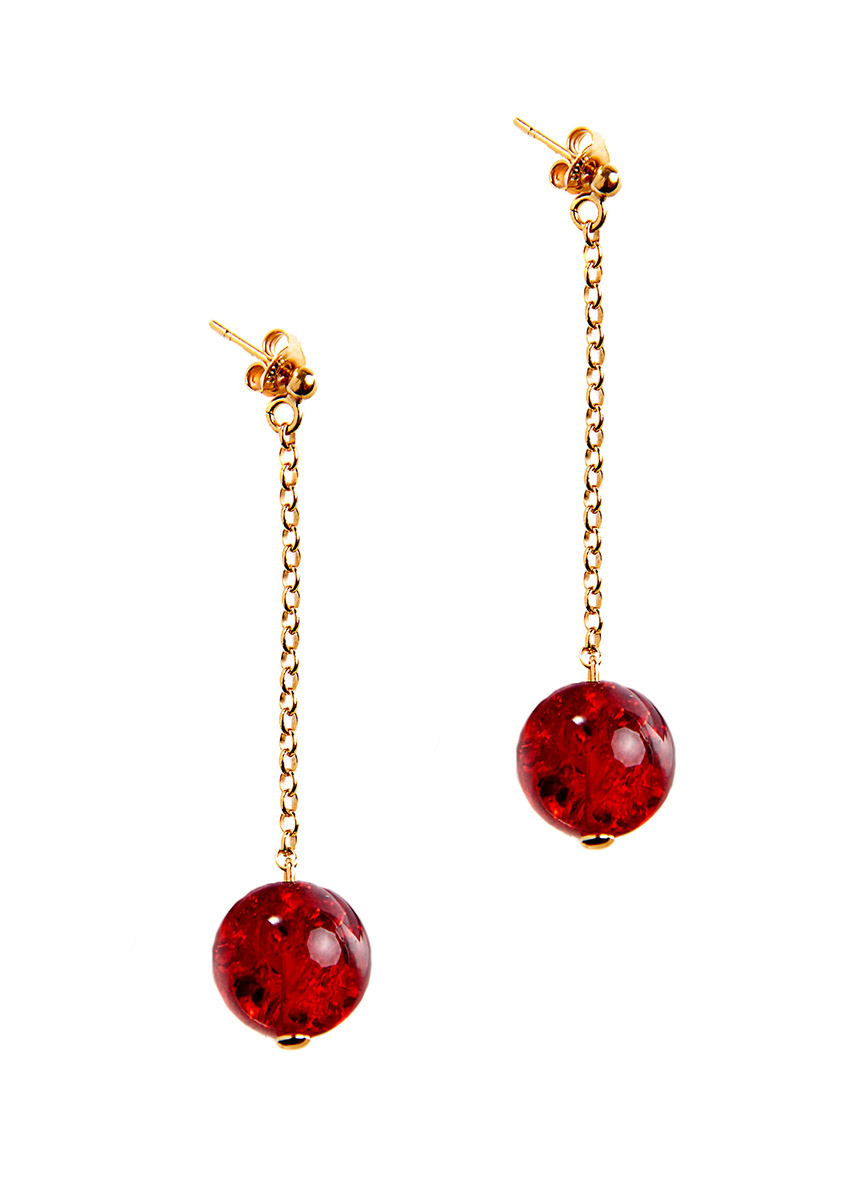 Earrings with red amber and a gold-plated silver.