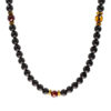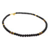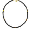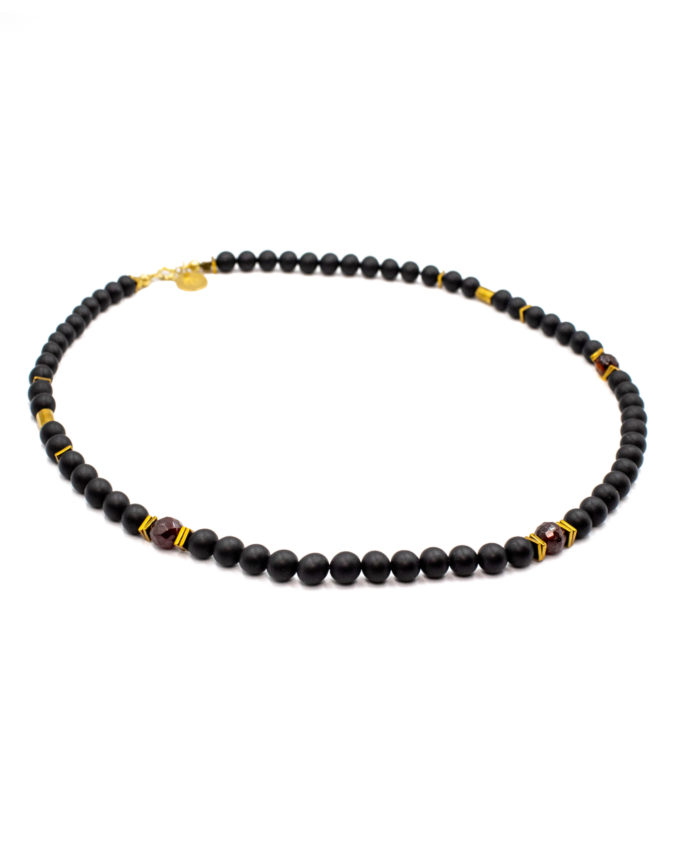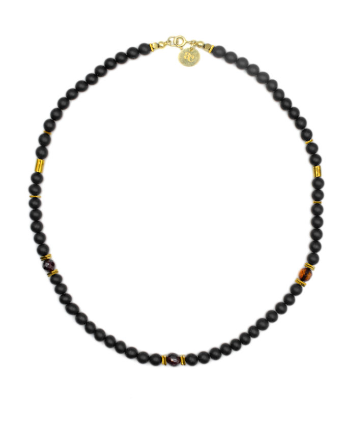 Necklace with matt onyx, facet amber, hematites and a gold-plated clasp.