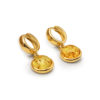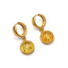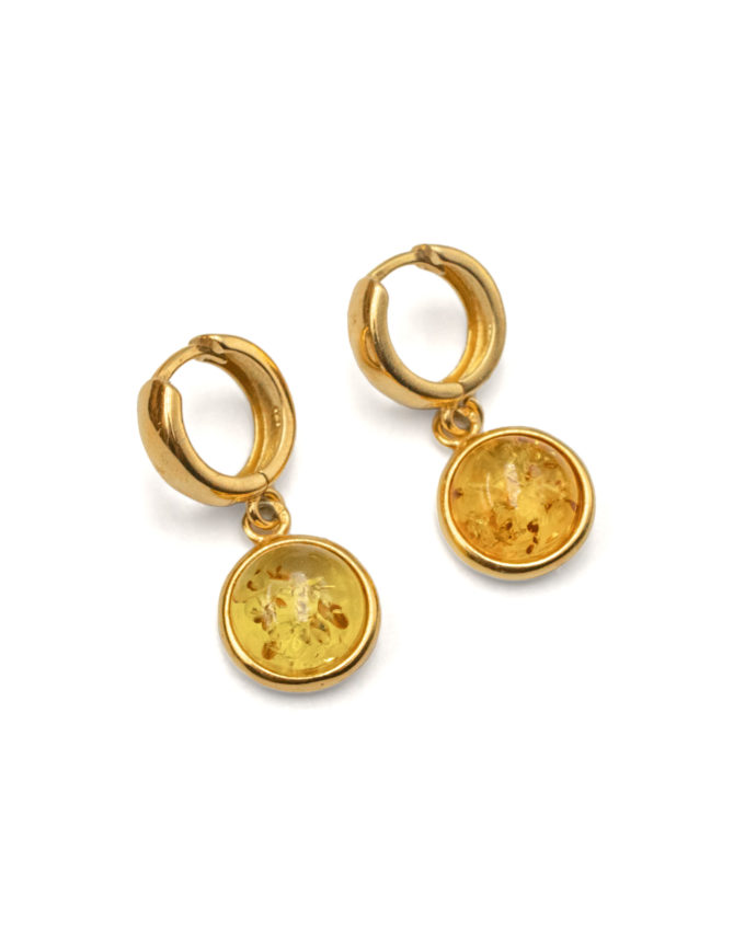 Earrings with a round gold-plated clasp and lemon amber.