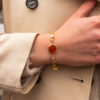 Pozłacana 24-karatowym złotem srebrna bransoletka z koniakowym bursztynem.