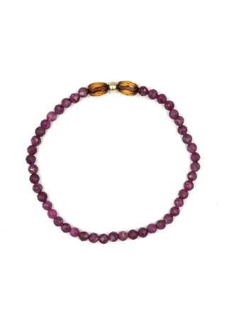 Elastyczna bransoletka z szmaragdem, fasetowanymi bursztynami oraz kulką z 14-karatowego złota.