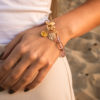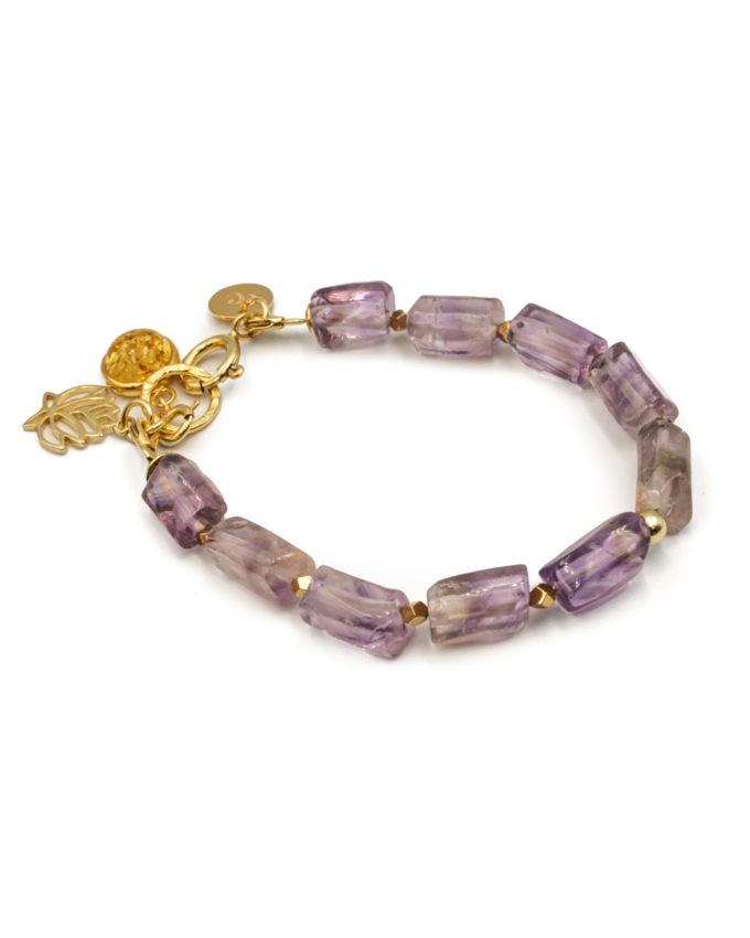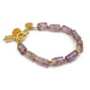 Bransoletka z ametystem, zawieszką z cytrynowego bursztynu i pozłacanym elementami.
